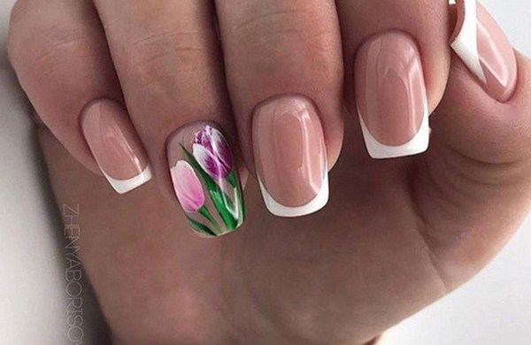 Un design minimaliste de clous avec des fleurs sera une aubaine pour les femmes qui en ont marre de la décoration excessive et qui veulent légèreté et originalité, même dans la conception des ongles.
