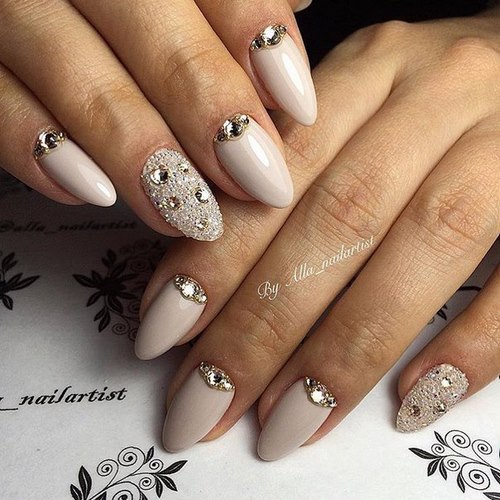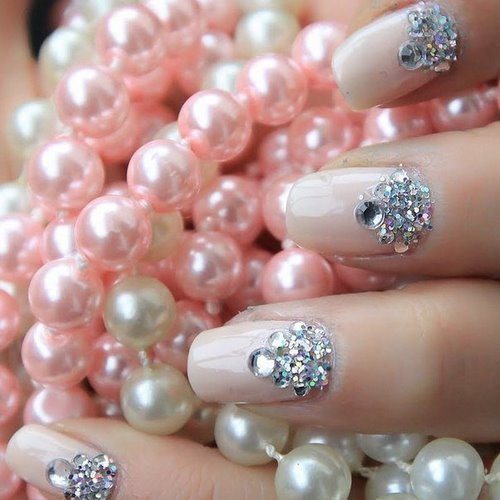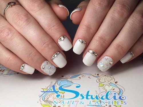 Comme nous l'avons déjà mentionné, une manucure avec des strass est parfaite comme un nail art de mariage.