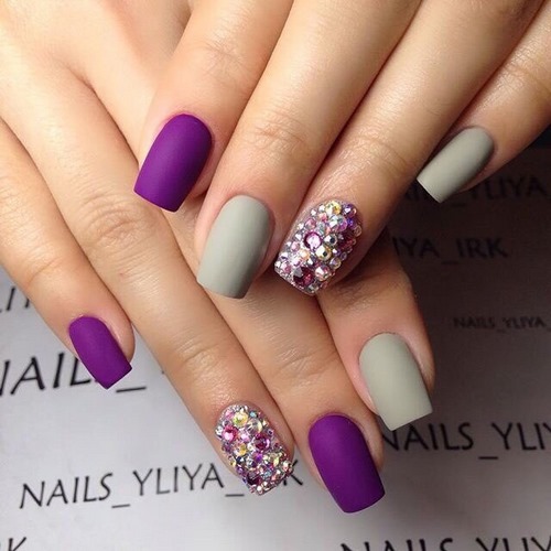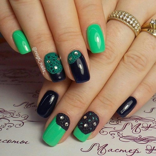 Les combinaisons de nuances contrastées ont fière allure, ce qui rend la manucure avec strass plus spectaculaire et unique.