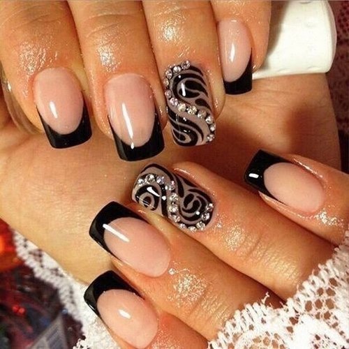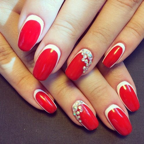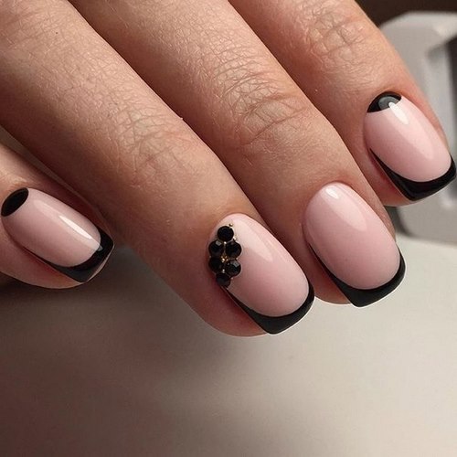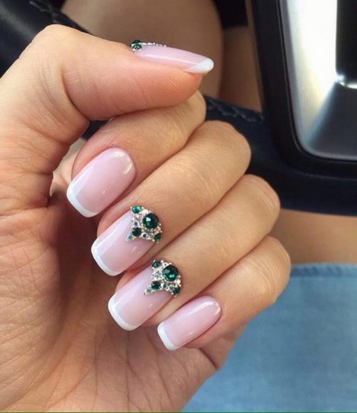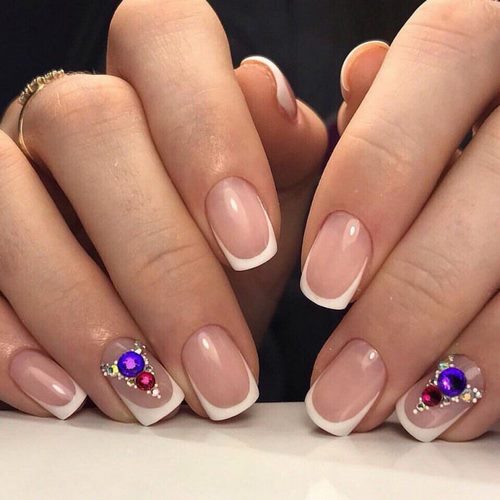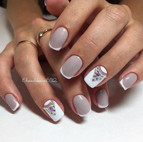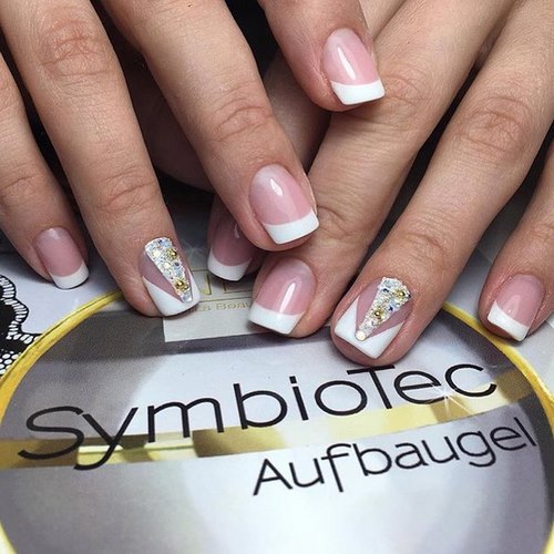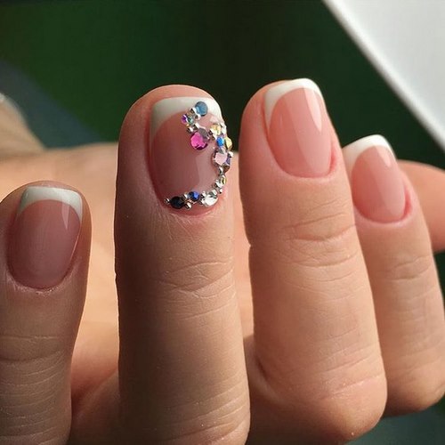 Il est à noter qu'une manucure avec des strass devrait seulement compléter et ne pas dominer le design français, ne décorant qu'un, deux soucis.