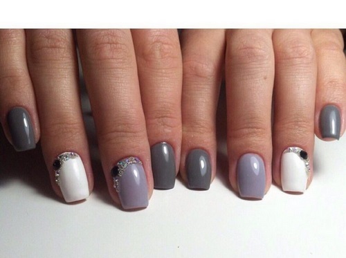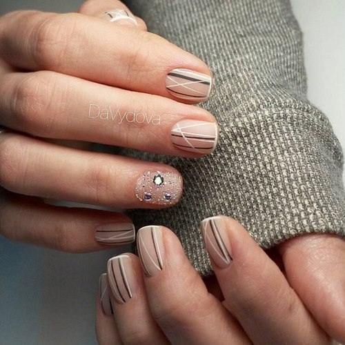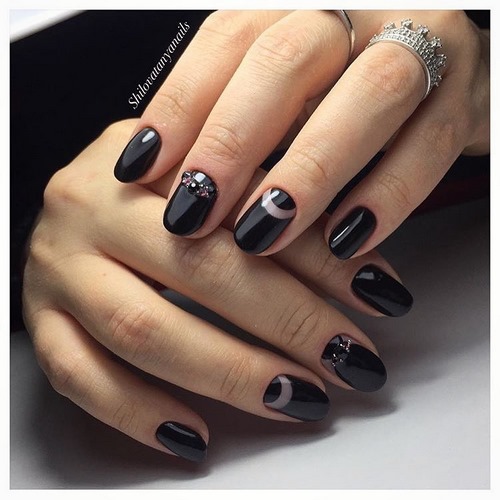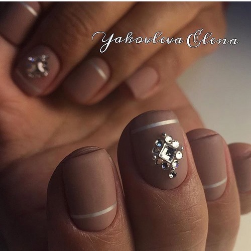 En outre, un monochrome avec des strass est une excellente solution pour les ongles de différentes longueurs et formes.
