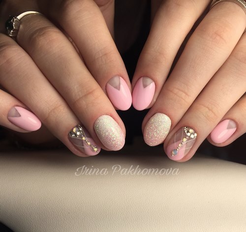 Il est préférable de confier une manucure avec des strass et des paillettes à un spécialiste qui sait exactement à quel point tel ou tel matériau est nécessaire pour qu’un tel design se révèle chic et non sans goût.