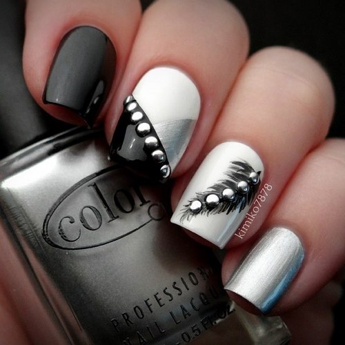 Une autre variété de ce type de nail art est devenue une manucure avec des strass et des pointes. Un appel et une manucure extraordinaire ne permettent que quelques-uns.
