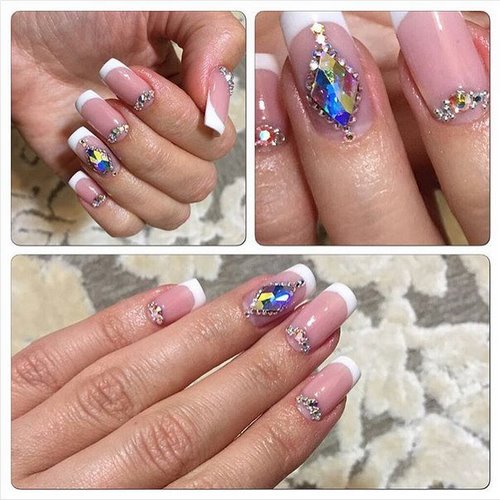 Manucure avec strass français et clair de lune