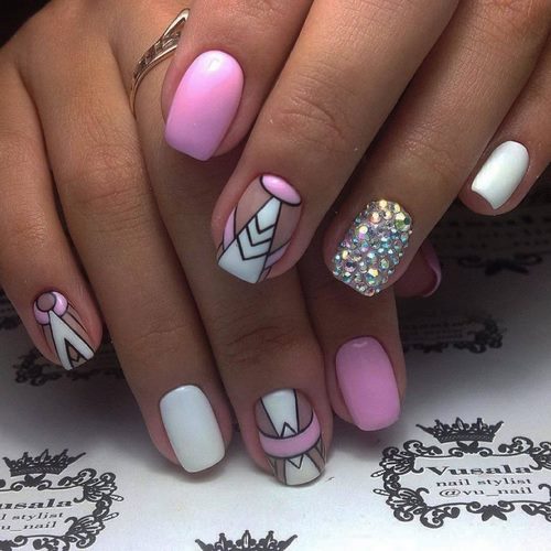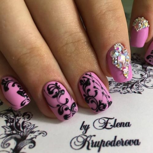 Si vous souhaitez ajouter quelque chose d'inhabituel à l'art des ongles, combinez la conception des ongles avec des strass avec des dessins et des motifs.