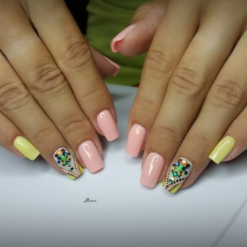 La manucure avec des cailloux peut être aménagée de différentes façons. Tu veux voir comment? S'il vous plait! Les meilleurs exemples spécialement pour vous)))