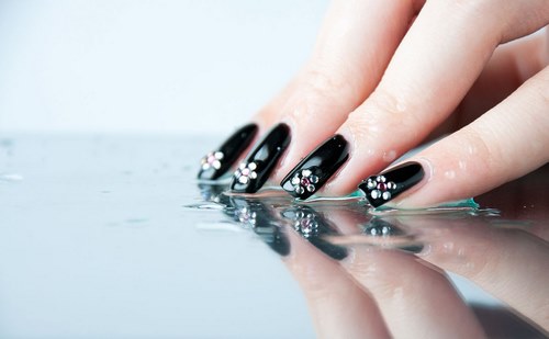 Une manucure inégalée et onéreuse avec des strass est décorée d’accents de cristal et même de pierres Swarovski imitant le luxe des diamants.