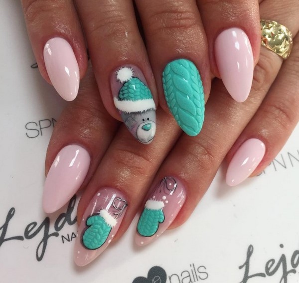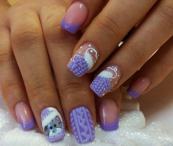 Comment se débrouiller sans hiver avec des ours attrayants et aussi merveilleux, même si vous êtes une grande fille depuis longtemps? Et voici l’idée: décorer avec des images de la charmante Teddy porte une manucure tricotée non moins charmante 2025-2026 dans le style du nail art par temps de pull. Différents types de motifs tricotés avec des ours en peluche peuvent être réalisés - vous pouvez utiliser des autocollants coulissants ou dessiner des ours en fabriquant des éléments individuels (chapeau, pull) avec de la poudre acrylique, qui donneront un effet 3D au motif dans un motif à la mode tricoté avec des ours en peluche.