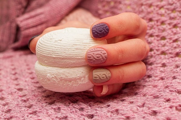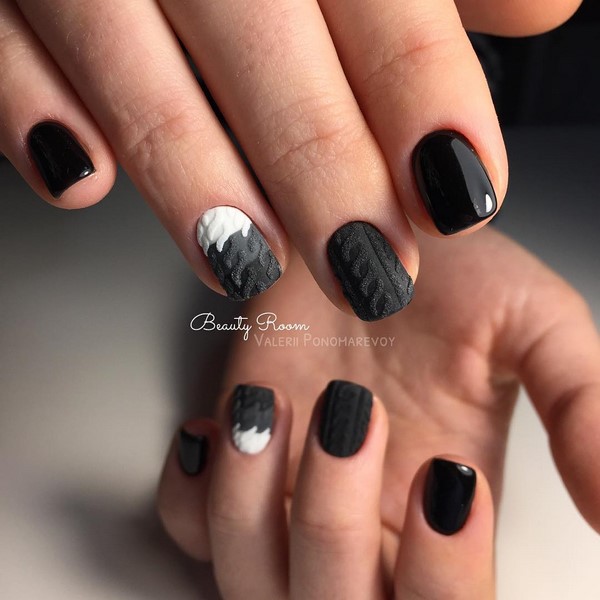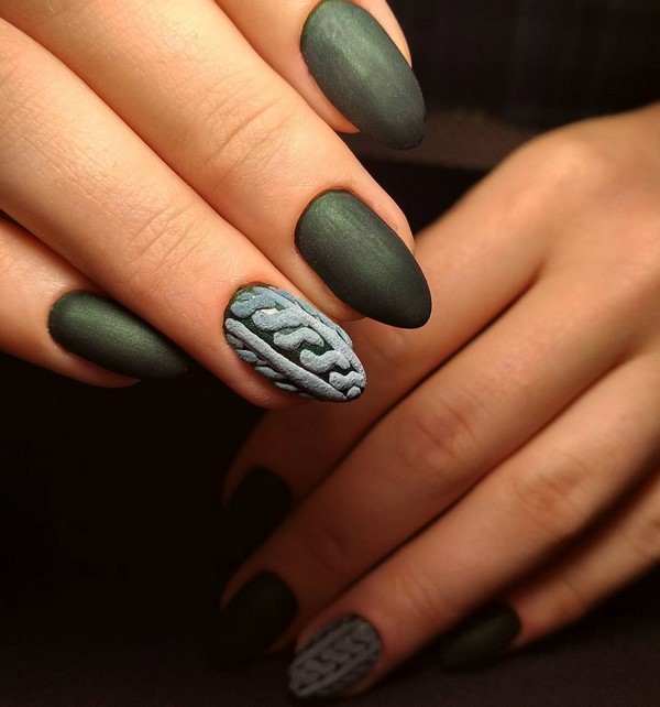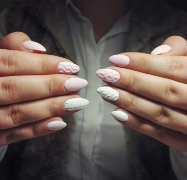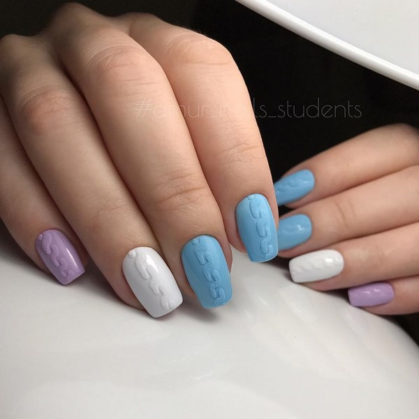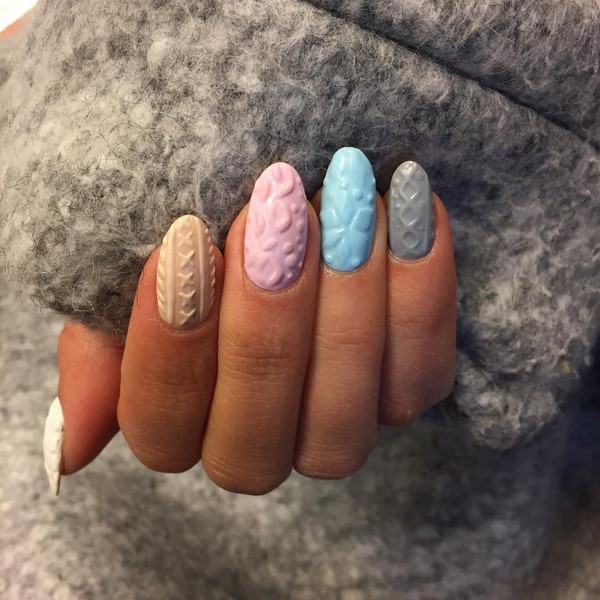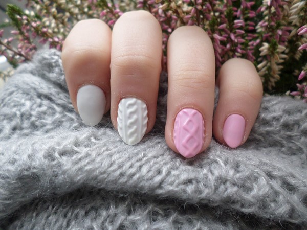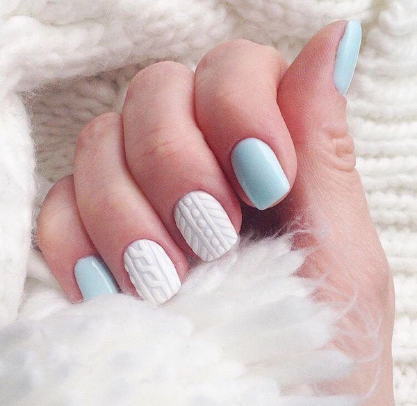 Incroyable «pull» de manucure, les maîtres proposent de jouer avec de la poudre acrylique, en donnant un effet et une texture spéciaux aux motifs tricotés, mais aussi sans, en obtenant un motif lisse et texturé.