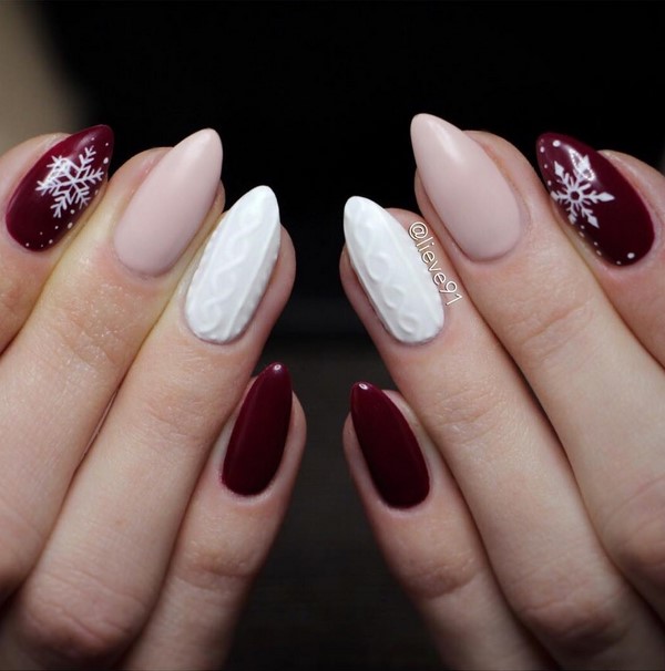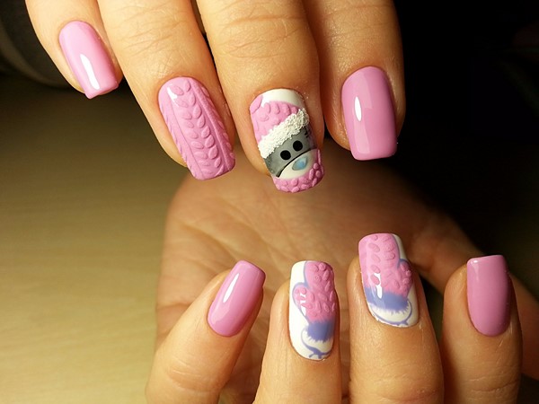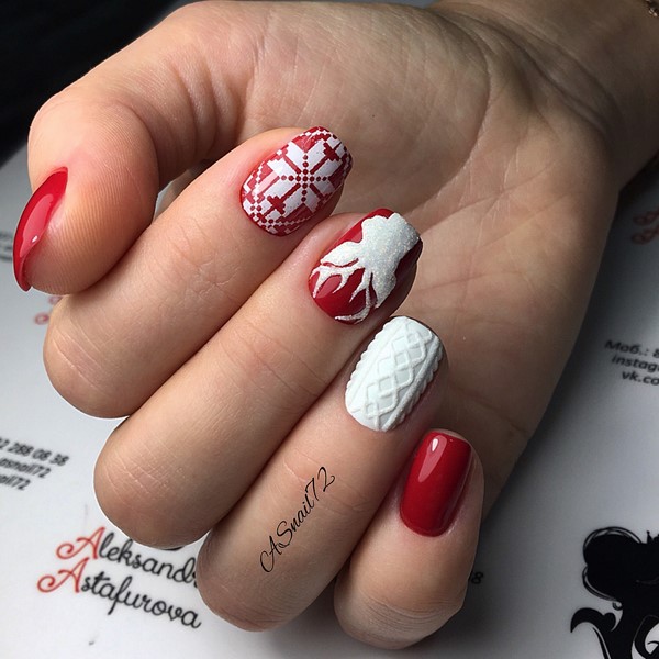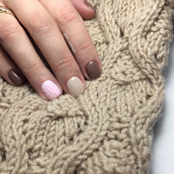 En raison de l'identité des motifs du motif sur les ongles et les vêtements pour la période automne-hiver, un tel nail art tricoté peut décorer au mieux les ongles pour le Nouvel An, Noël, ainsi que la manucure au quotidien pour la saison fraîche.