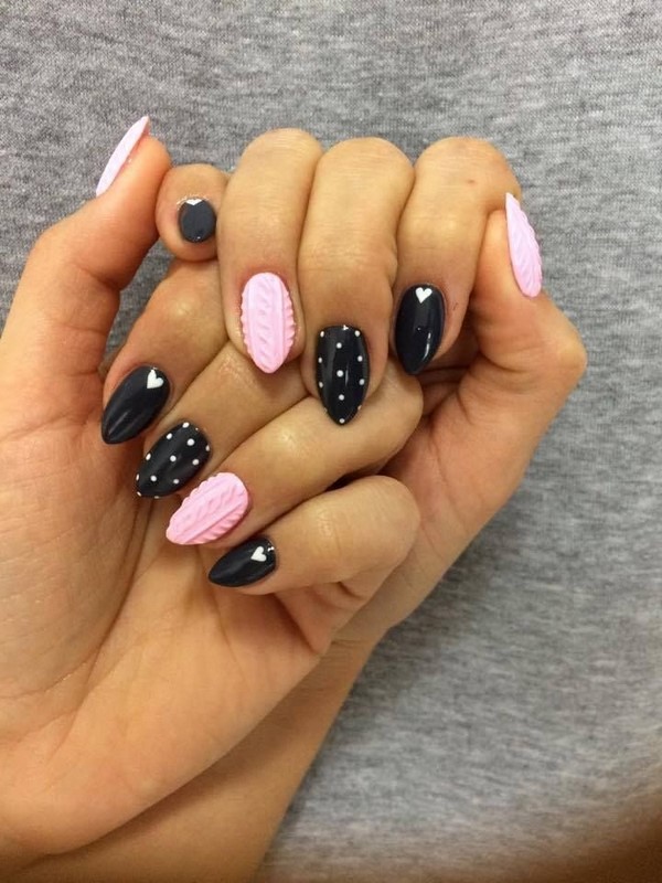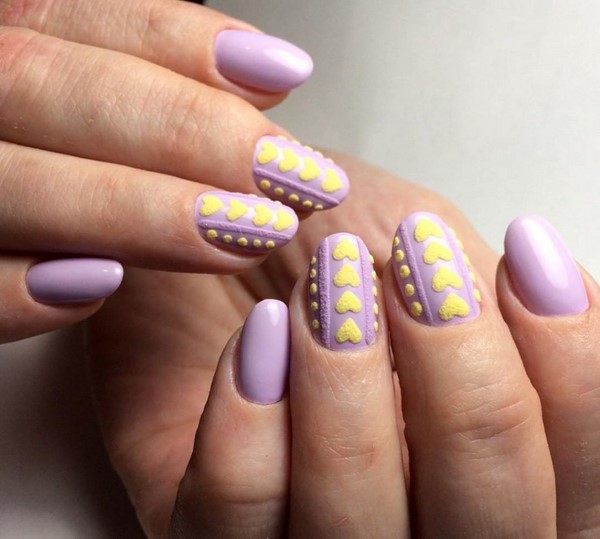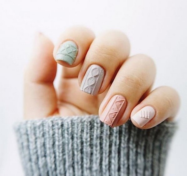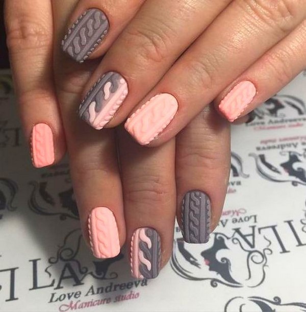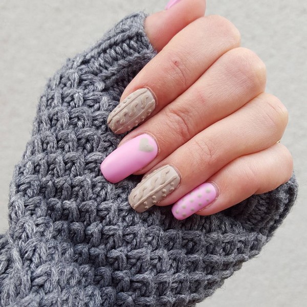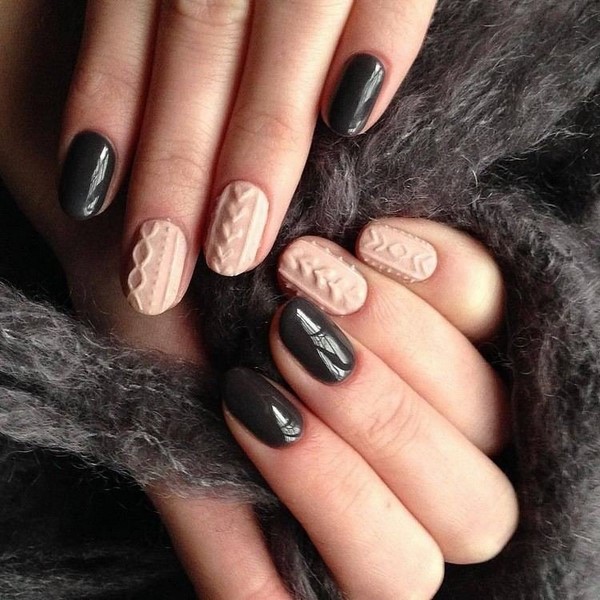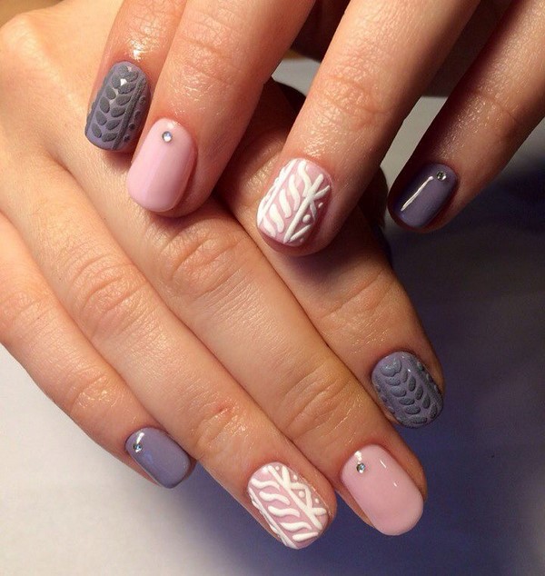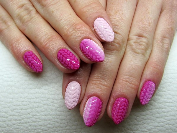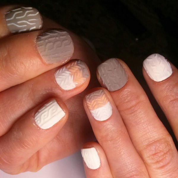 Les motifs de tricot attrayants sur les ongles ont un nombre illimité de variations pour créer un design à la mode des ongles de chandail. Les zigzags, les traits, les points et les rayures aideront à créer une manucure tricotée dans la meilleure solution.