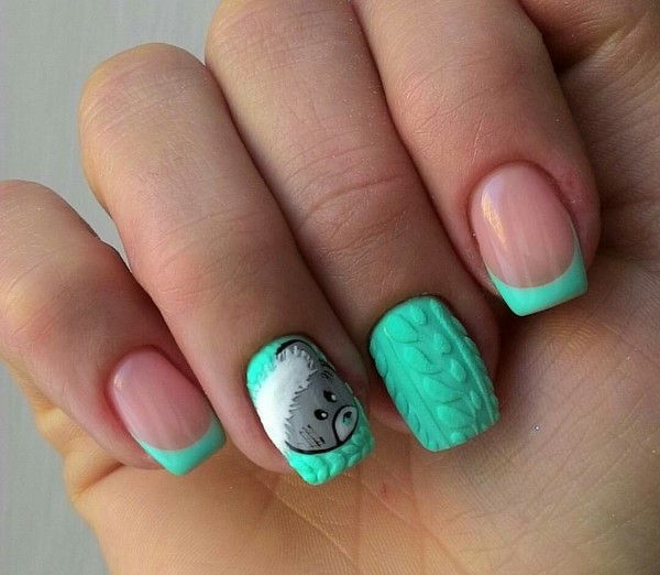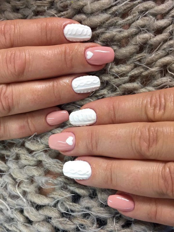 Un excellent dessin d'ongles tricotés habillera parfaitement les doigts pour la saison froide avec un motif aussi «douillet».