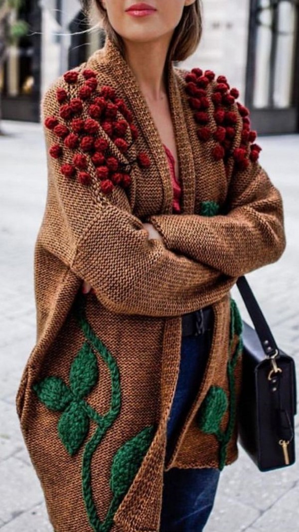 Des options intéressantes pour les cardigans à la mode peuvent être des modèles avec des impressions, des motifs ethniques, des ornements.