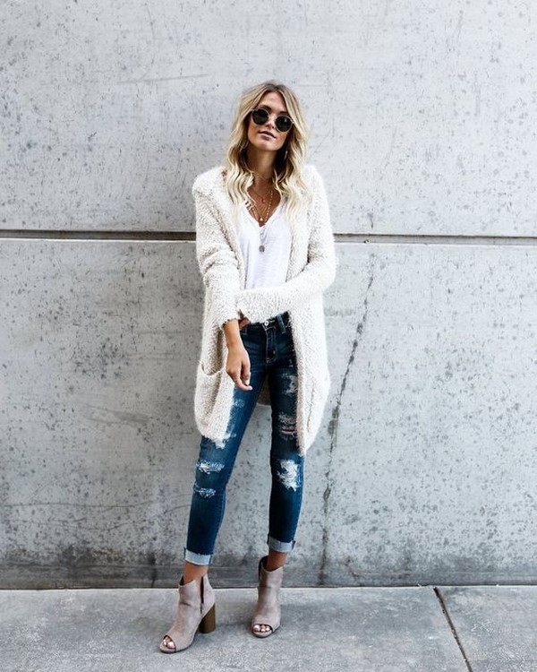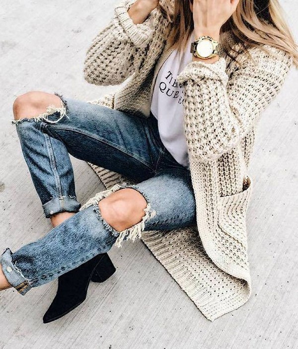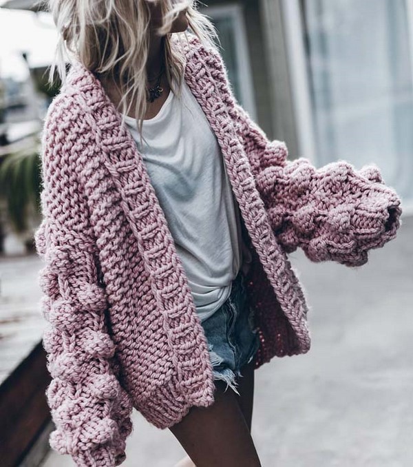 En plus des différences texturées, les cardigans à la mode peuvent varier en longueur - classique, raccourcie et allongée.