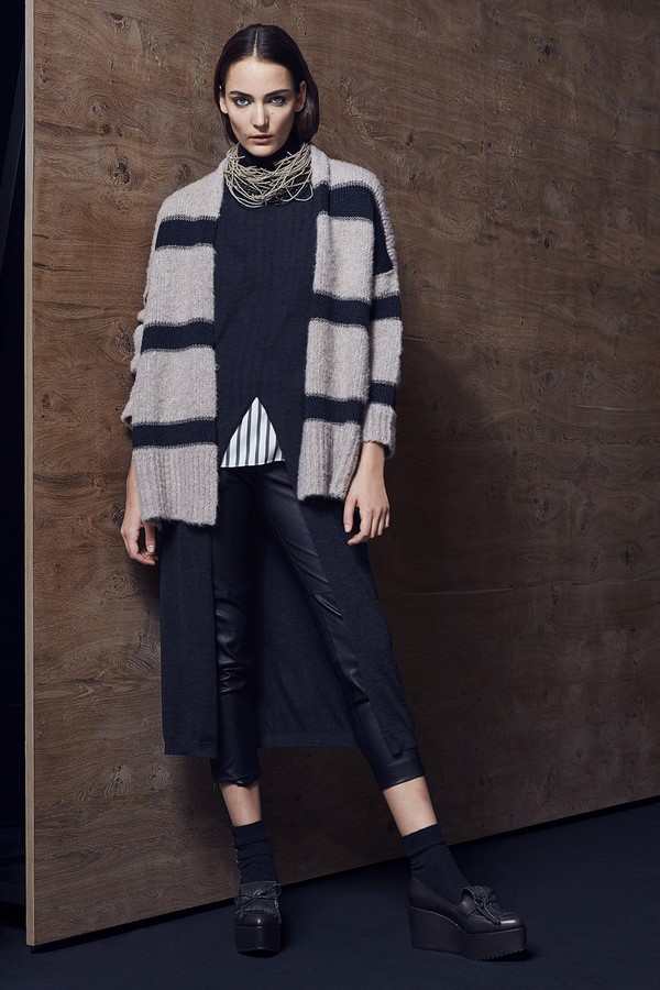 Les cardigans à la mode 2025-2026 sont confectionnés à la manière d'un manteau ou d'une enveloppe légère, comme un poncho ou une cape. Les cardigans originaux sont également présentés sans manches lors de la saison 2025-2026, ressemblant à des vestes.