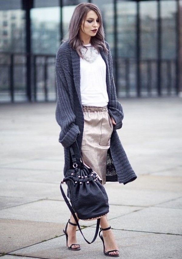 Les longs cardigans sont toujours élégants et spectaculaires. Grâce à la silhouette allongée d'un cardigan à la mode, vous pouvez ajuster la silhouette et affiner l'image. Ce sont des cardigans à la mode dans une solution longue qui constitueront un excellent choix pour des images élégantes, ainsi que des décors pour une occasion spéciale. Des pantalons et des jeans à la coupe ajustée, des mini-jupes et des robes, des shorts et, en plus, des bottes au-dessus du genou et ton look avec des cardigans longs à la mode seront au top!