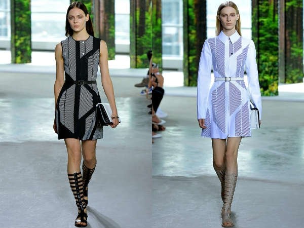 La plupart des robes de soirée sans manches de la saison 2025-2026 sont présentées dans des teintes apaisantes - noir, blanc et gris. Si le code vestimentaire le permet, n'hésitez pas à choisir les robes de bureau sans manches originales avec un imprimé intéressant et ennuyeux.