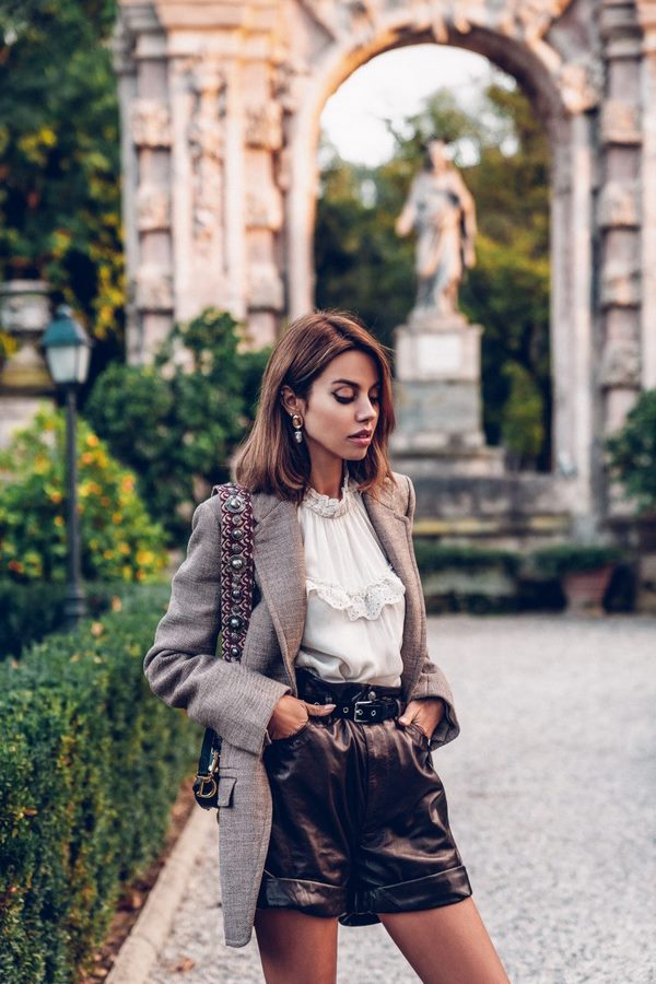 Les modèles tendance de courts métrages à la mode en cuir ou en matériaux en cuir seront très pertinents pour la période plus froide, quand ils peuvent être élégamment complétés avec un sweat-shirt ou un pull en maille, en choisissant de belles chaussures comme accessoires. Short en cuir à la mode peut être non seulement en noir, mais aussi en brun ou en bronze. Après avoir ramassé une chemise blanche et un blazer à carreaux pour des shorts à la mode, vous pouvez réaliser une tenue concise avec des shorts à la mode pour la ville.