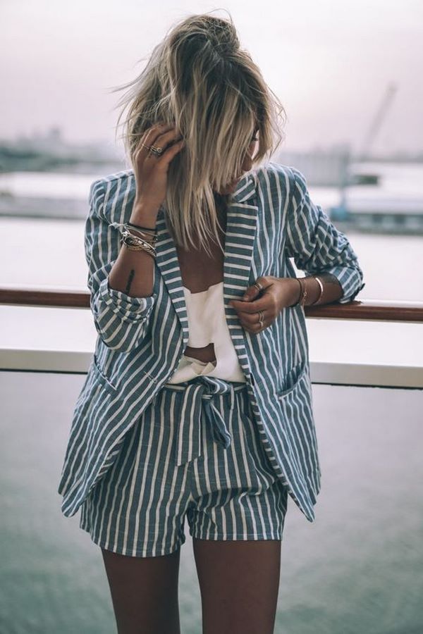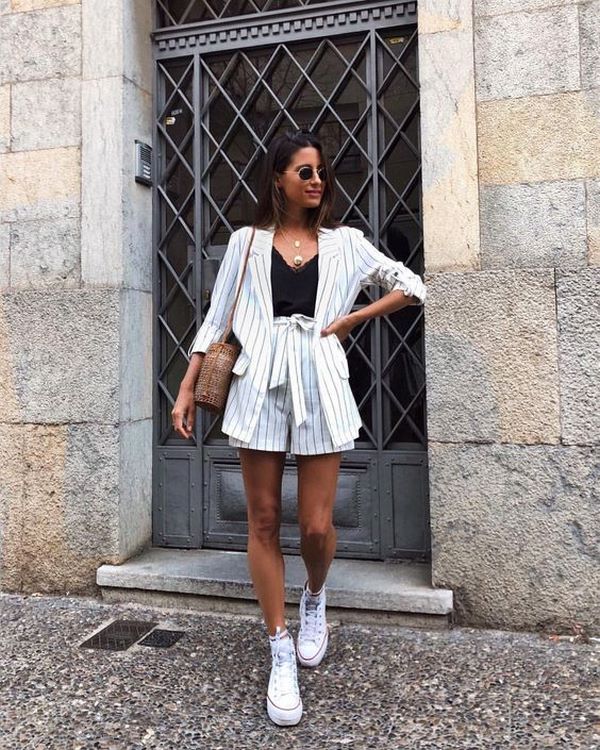 Une autre tendance de la mode des shorts 2025-2026 sera de beaux costumes, consistant en un tandem à la mode de shorts et une veste ou un haut. Une tenue similaire avec un tailleur et un short est intéressante et élégante, vous permettant de faire preuve de beaucoup de goût et de style. Choisissez des costumes à la mode avec un short à carreaux ou à rayures qui ajoutera de la fraîcheur au look.