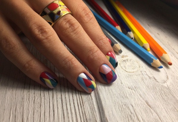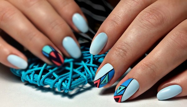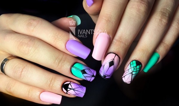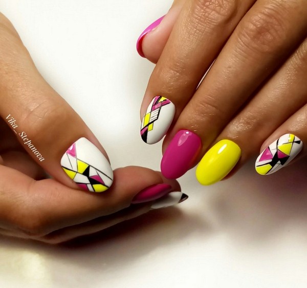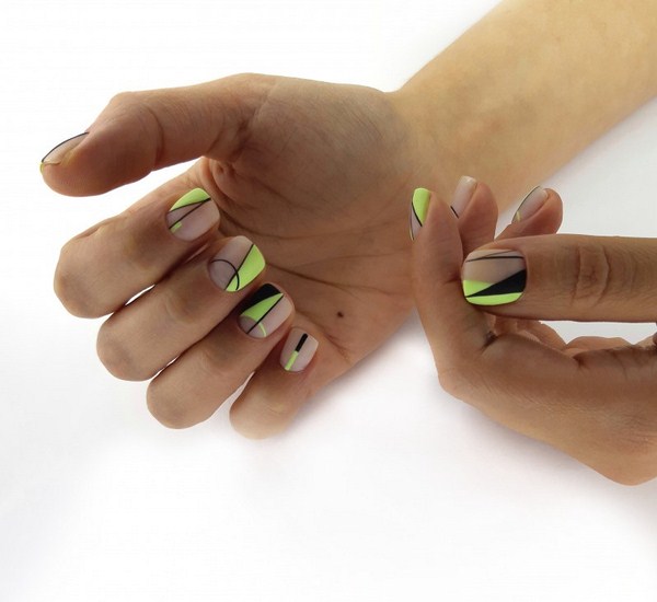 Les beaux ongles "géométrie" sont beaux dans le sens où ils s'intègrent à toutes les saisons. Ainsi, en été, vous avez la possibilité de regarder de magnifiques croquis géométriques au néon.