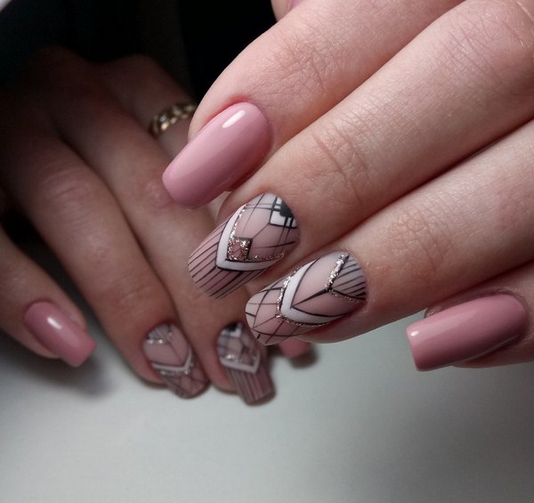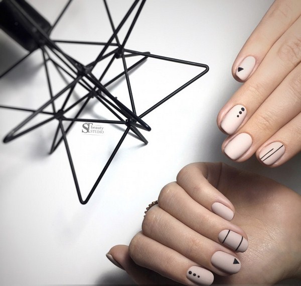 À la recherche d'idées créatives pour la manucure dans un style géométrique, faites attention au design des ongles minimalistes 2025-2026. Une géométrie de manucure minimaliste simple et mégastile contribuera à donner une apparence étonnante à la fois au bureau et pour tout autre événement.Le minimalisme implique des lignes graphiques, des points et des figures qui sont créés sur un doigt ou deux sans décor inutile. La manucure géométrique 2025-2026 avec losanges au niveau des trous sur une base nue, ainsi que de nombreux autres types de manucure géométrique sur la photo du montage, deviendra belle.