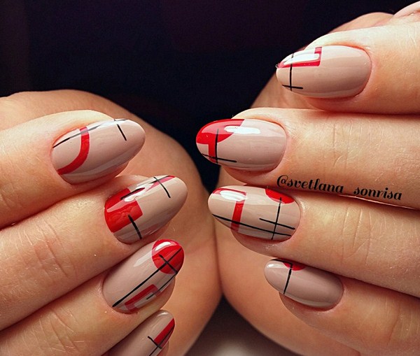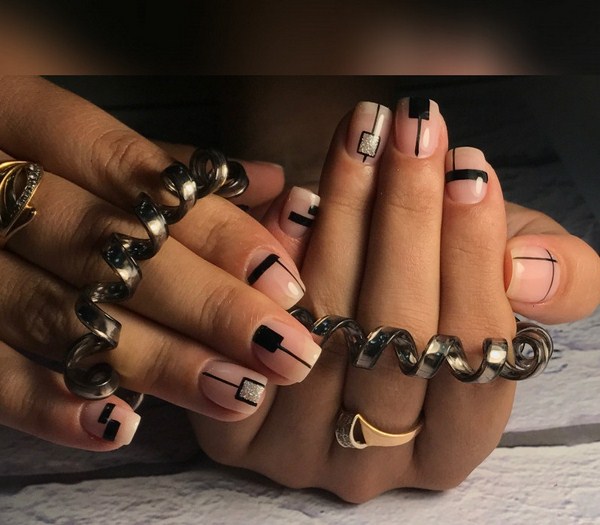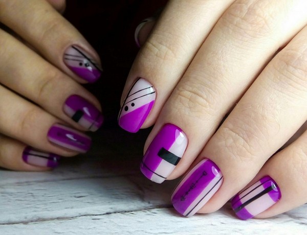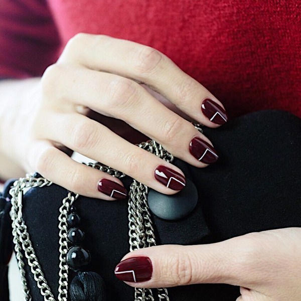 La manucure à géométrie la plus simple est constituée par les lignes sur les ongles, ce qui peut être fait de différentes manières, à partir de laquelle la manucure géométrique à la mode sera complètement nouvelle et fraîche.