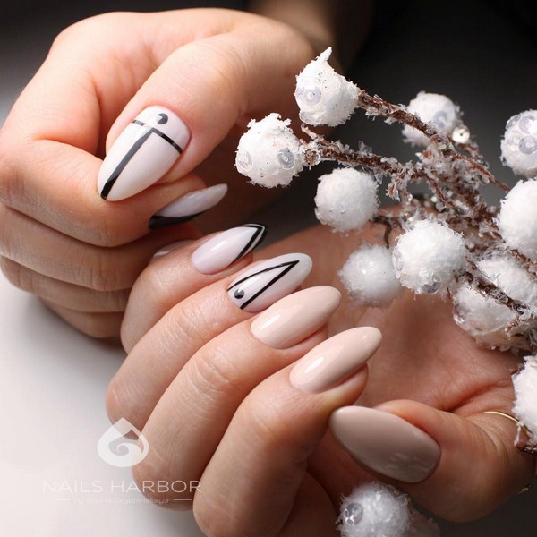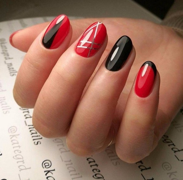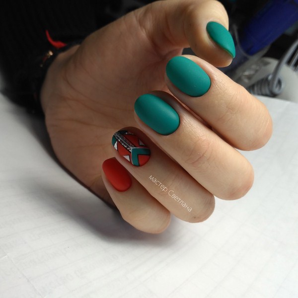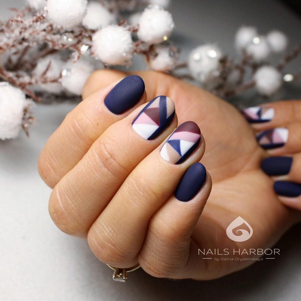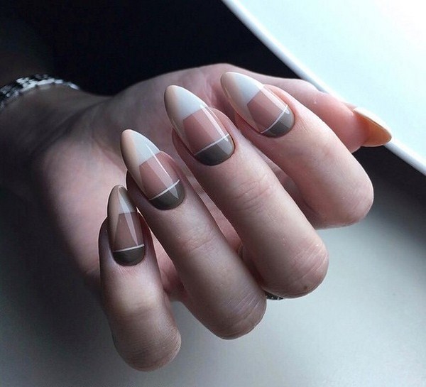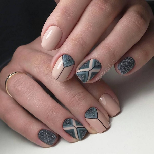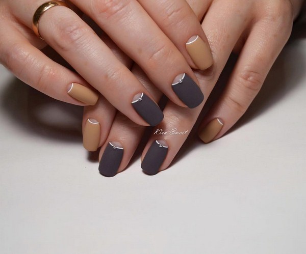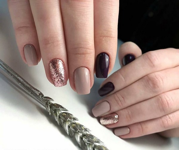 Une version étonnante et tendance de la manucure d'automne peut servir de «bloc de couleurs», toujours intéressant et tellement excitant. Les multiples secteurs dans lesquels les brisures d’ongles sont remplis de 2 couleurs différentes ou plus. Pour obtenir un «bloc de couleurs» élégant pour l'automne, appliquez-le sur deux doigts avec trois tons et des cellules de tons neutres, ce qui donnera le meilleur dessin d'ongle pour l'automne 2025-2026, comme le montre la photo.