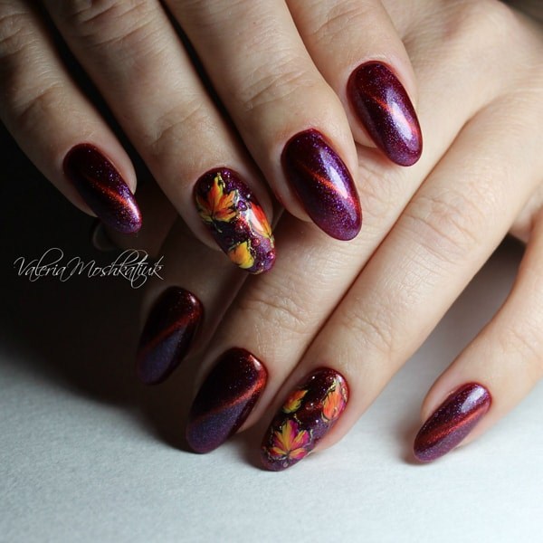 Et que pouvons-nous dire d’un délicieux manucure d’automne à la bourgogne, au vin, aux murales délicates et aux cailloux qui la complète. Assurez-vous que lors de la prochaine saison de la mode, chaque vrai lei prendra une manucure d'automne à la mode avec une performance inégalée qui lui conviendra.