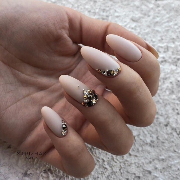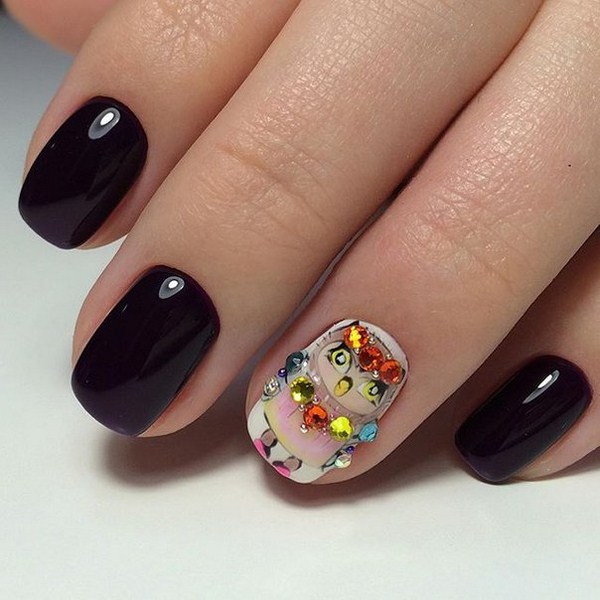 Qu'il s'agisse d'une sortie élégante ou d'une image pour une occasion spéciale, la manucure d'automne dans une performance irrésistible avec décor sera parfaite! Et ici, vous ne pouvez pas vous passer de strass, de cristaux, de kamifubuki et d’autres types d’éléments décoratifs dans une manucure tendance de l’automne.