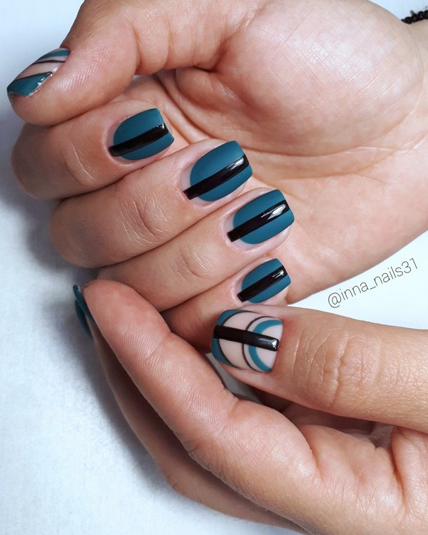 Grâce aux différentes variations de la palette de couleurs pour l’automne, vous pouvez regarder une manucure automnale beige, grise et solide, ainsi qu’une manucure intrigante pour l’automne avec des nuances sombres et attrayantes de bleu, émeraude, cerise, violet.