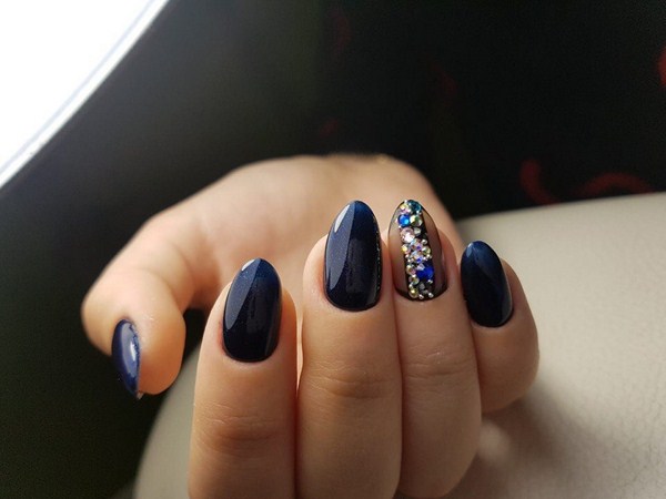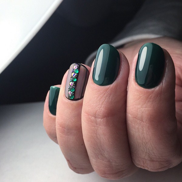 Le scintillement spectaculaire des strass attire toujours le regard, surtout si vous choisissez des galets laconiques dans certaines teintes et formes, qui complèteront parfaitement le nail art automnal lui-même, ainsi que la tenue.Une excellente combinaison de rouge et de blanc avec des pierres de même couleur, des tons bleus, violets et verts de la manucure d'automne sera magnifique, avec des pierres de couleur or et des teintes de vernis répétitives. Remplissez de strass quelques doigts ou un doigt entièrement, comme indiqué sur la photo, afin d'obtenir un dessin d'ongles d'automne à la mode 2025-2026.