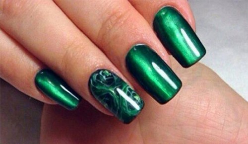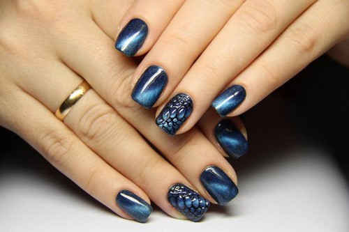 La cellophane holographique ou une feuille spéciale permet au maître de créer un motif extraordinaire sur la plaque à ongles. Une telle manucure à la mode est très impressionnante et peut paraître provocante.