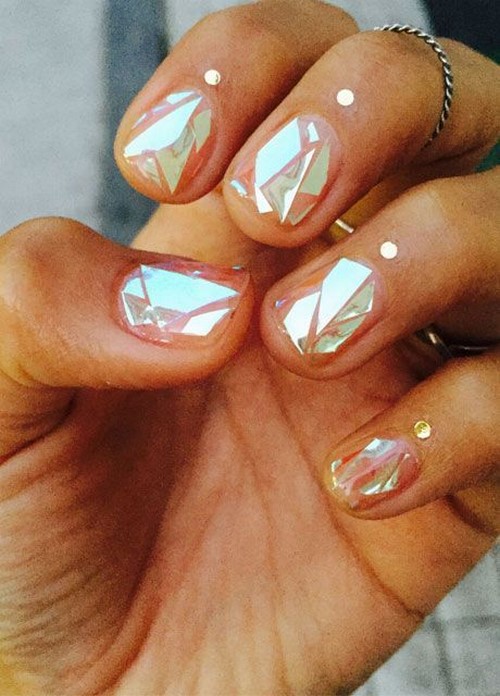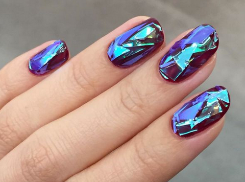 Plus loin sur notre liste de nouveautés manucure manucure en verre avec l'effet du motif "verre brisé".
