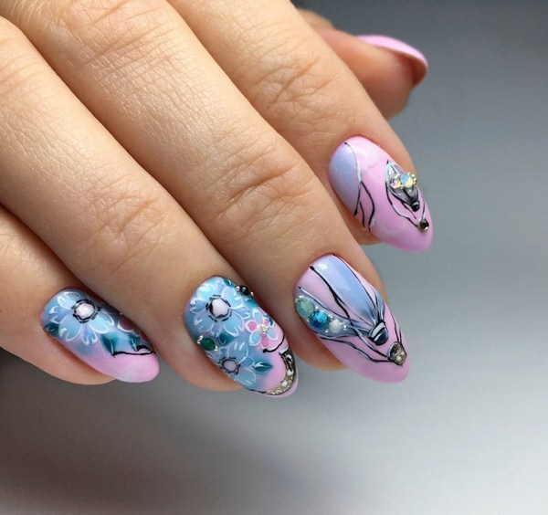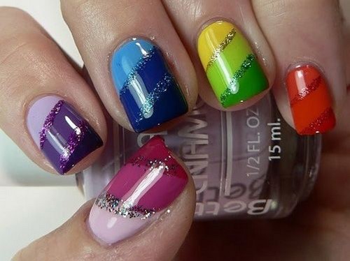 Et comme il n'y a pas de limite à la fantaisie, les différents ongles peuvent être décorés avec des paillettes, des strass, des imprimés floraux et d'autres options de design - ce qui sera sans aucun doute stylé et original.