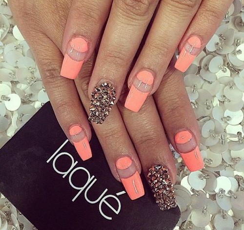 Il y a un inconvénient que cette manucure à la mode a. Toutes les filles ne peuvent se le permettre, car la plaque à ongles doit être allongée.