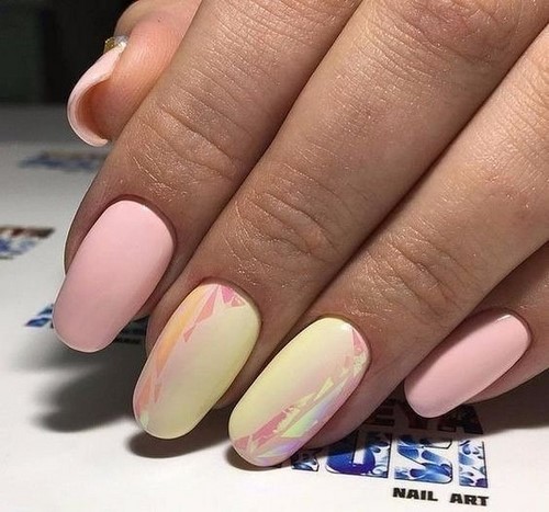 Sans aucun doute, les nuances de clous à la mode nus et pastels sont à la mode. La tendresse et la sophistication de la manucure dans de telles nuances se combinent harmonieusement avec toutes les manières festives, et chaque jour une telle manucure est tout à fait appropriée.