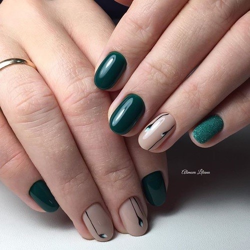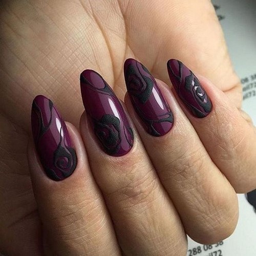 Une palette de nuances sombres, par exemple noir, bleu, bordeaux, vert, rouge, violet, prune, convient principalement aux amateurs de manucure pour créer des versions automne-hiver du nail art, bien que la combinaison de ces nuances convienne à la conception des ongles en soirée, à tout moment de l'année.