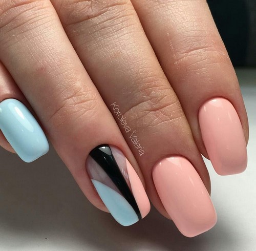 Si vous aimez les ongles courts à la mode, vous pouvez les rendre lisses et carrés, choisir un ovale soigné, créant une manucure unique sur des ongles courts, pratique dans la vie quotidienne.