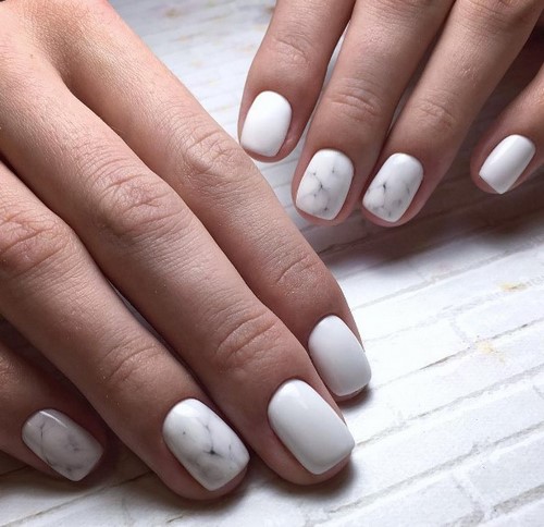 Des ongles à la mode en marbre effet miroir ont l’air parfait, ainsi qu’un design ressemblant à différents types de revêtements.