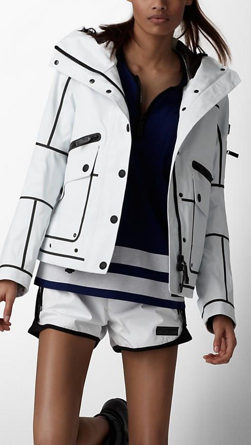 Les stylistes complètent souvent les coupe-vent pour femmes avec une capuche, des poignets en caoutchouc et des élastiques au col.