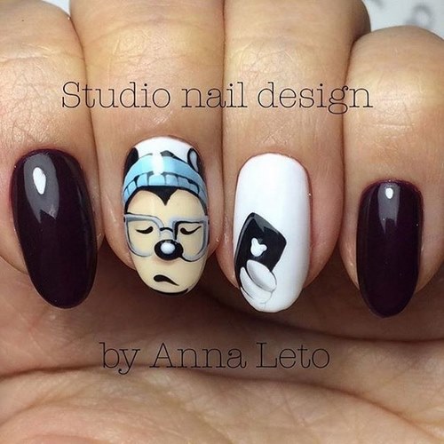 Manucure inhabituelle avec des dessins est le plus souvent à thème. Sur les ongles, vous pouvez dessiner des personnages de dessins animés, des petits hommes et des animaux, votre image préférée, des drapeaux et des objets, créant ainsi non seulement une manucure inhabituelle, mais également une image inhabituelle pour son propriétaire.