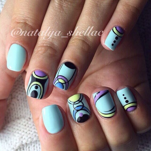 Une manucure inhabituelle avec un motif peut couvrir tous les ongles ou se combiner avec un vernis ordinaire, créant ainsi un ongle complexe et inattendu.
