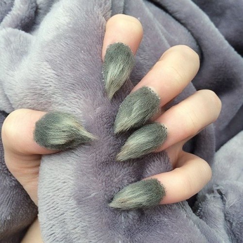 Manucure inhabituelle avec un revêtement de velours