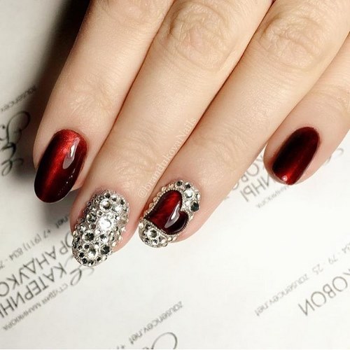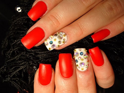 Nous ne pouvons pas ne pas mentionner une manucure inhabituelle avec des strass et des pointes, qui font souvent partie d’un dessin d’ongle complexe.