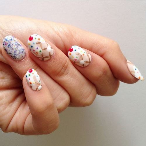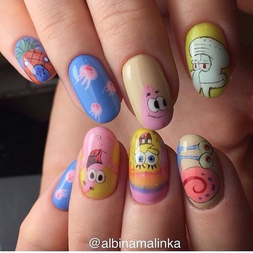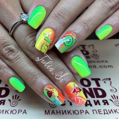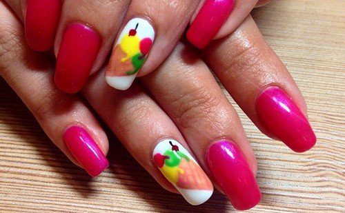 Les ongles seront complètement inattendus, aux extrémités desquelles se trouvent des lettres, des fruits et d’autres objets.