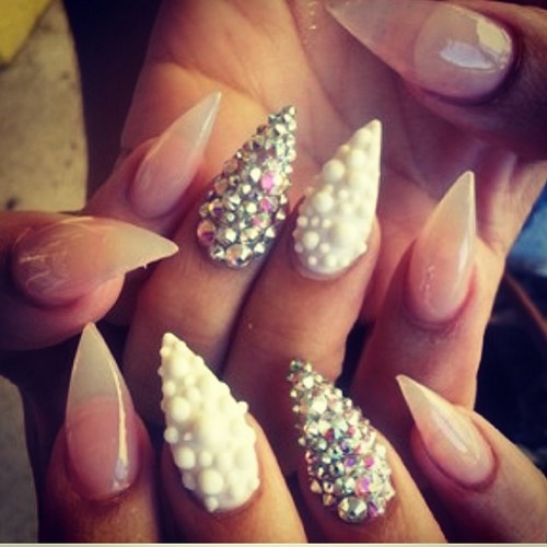 Manucure insolite avec des strass et des pointes