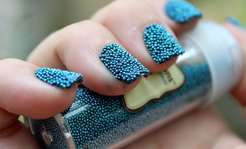 Une telle manucure inhabituelle avec des granules est également appelée caviar, car les petits granules qui recouvrent la plaque à ongles ressemblent à des œufs.
