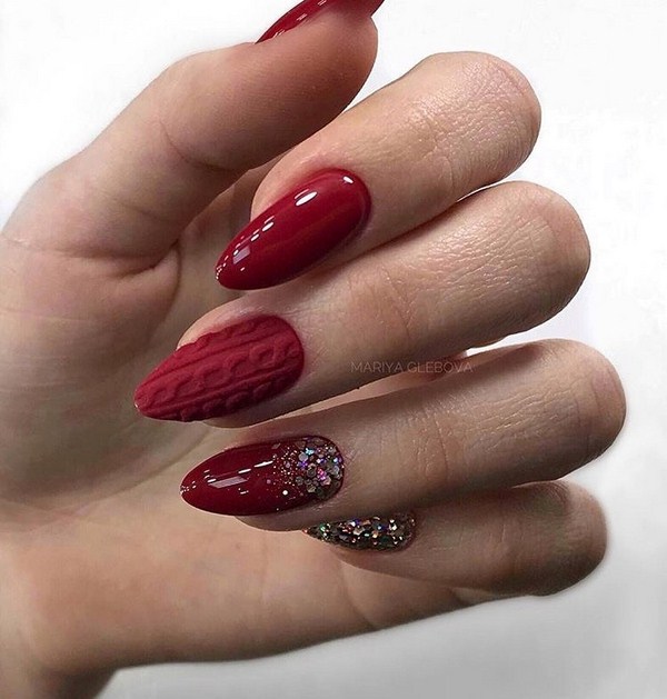 La manucure du Nouvel An faite en velours, moelleuse, douce et légèrement évocatrice est une création d’ongles du Nouvel An pour les filles courageuses et créatives dans leurs prédilections à la mode.
