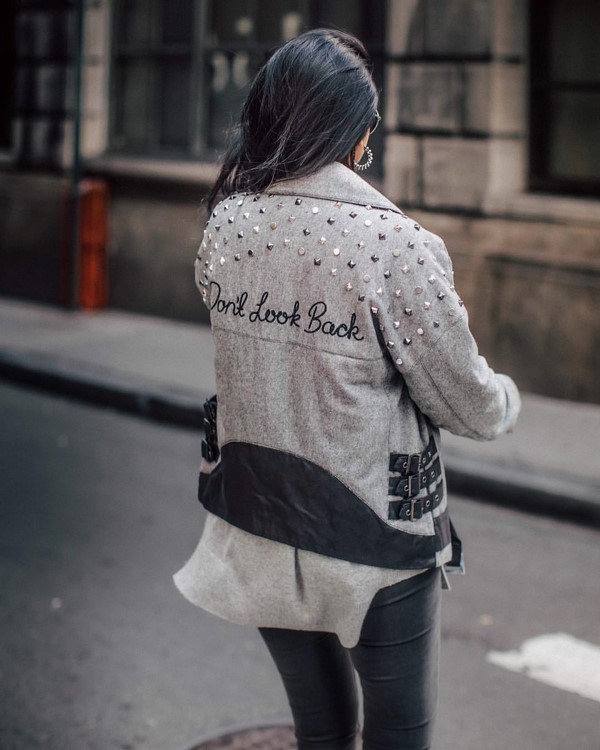 En passant, les maîtres de la mode ont attaché une importance particulière au design du dos, à la décoration du cuir, du denim, des vestes métallisées, non seulement avec des images, mais aussi avec des rayures, des inscriptions, des broderies volumineuses et des perles.