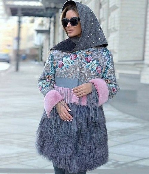 En outre, les manteaux de fourrure peuvent être brodés, en plus de la fourrure, décorés avec des applications, décorés à la manière d'un patchwork, ce qui rend tout look avec un manteau avec une fourrure tout à fait extraordinaire et individuel.